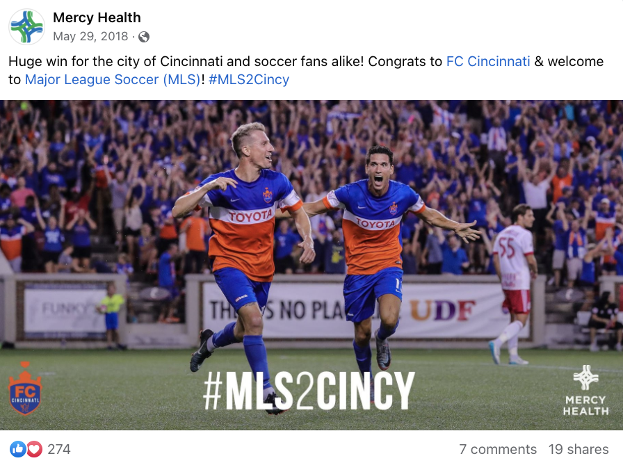 - Developedsocial media strategy announcing partnership with Major League Soccer’s FC Cincinnati and Mercy Health resulting in more than 150M impressions.